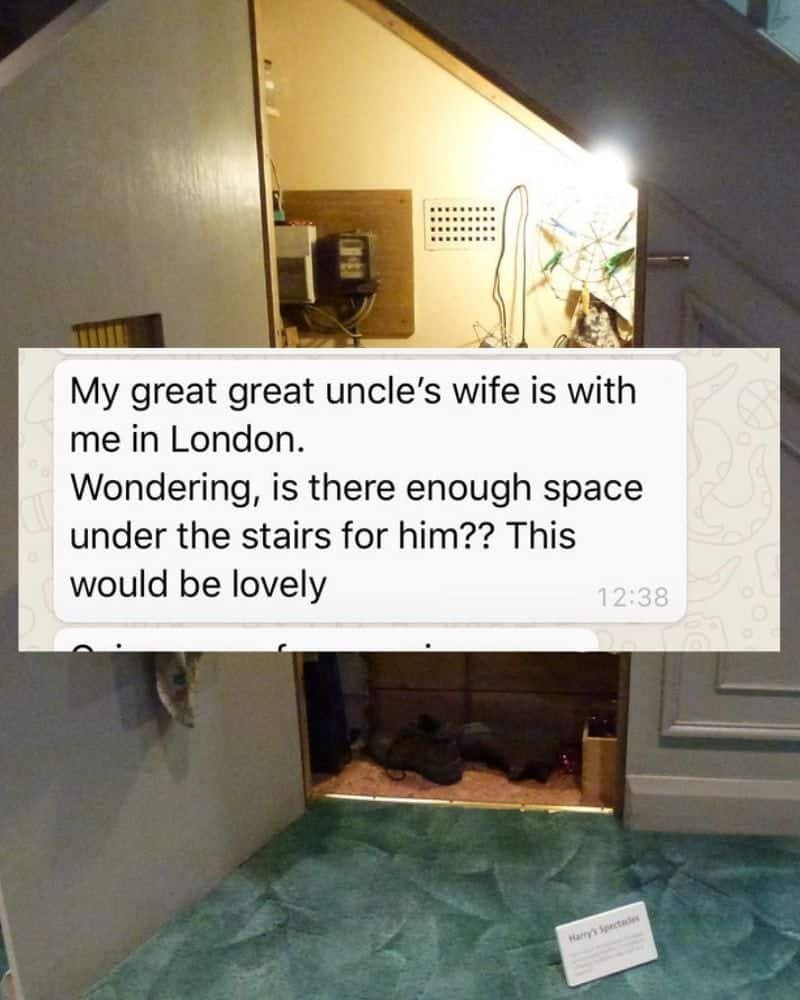 However, living under the staircase has never been a part of that fantasy. While most people believe the Dark Lord (he-who-must-not-be-named) is the villain in the story, we believe the true villains are the Dursleys – Harry’s aunt Petunia, uncle Vernon and cousin Dudley – who make him sleep under the staircase and treat him as if he were a house elf.